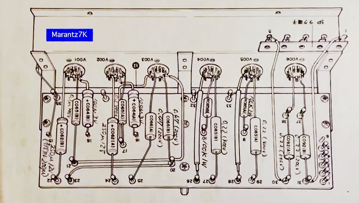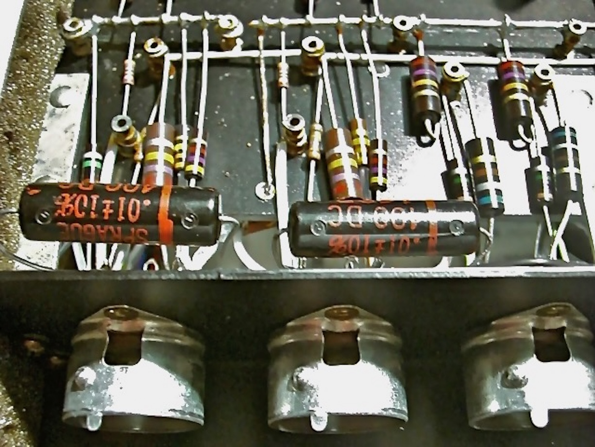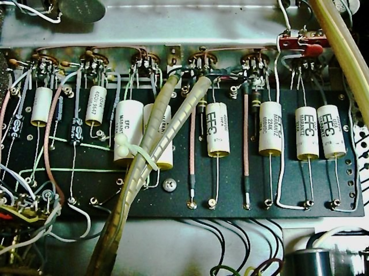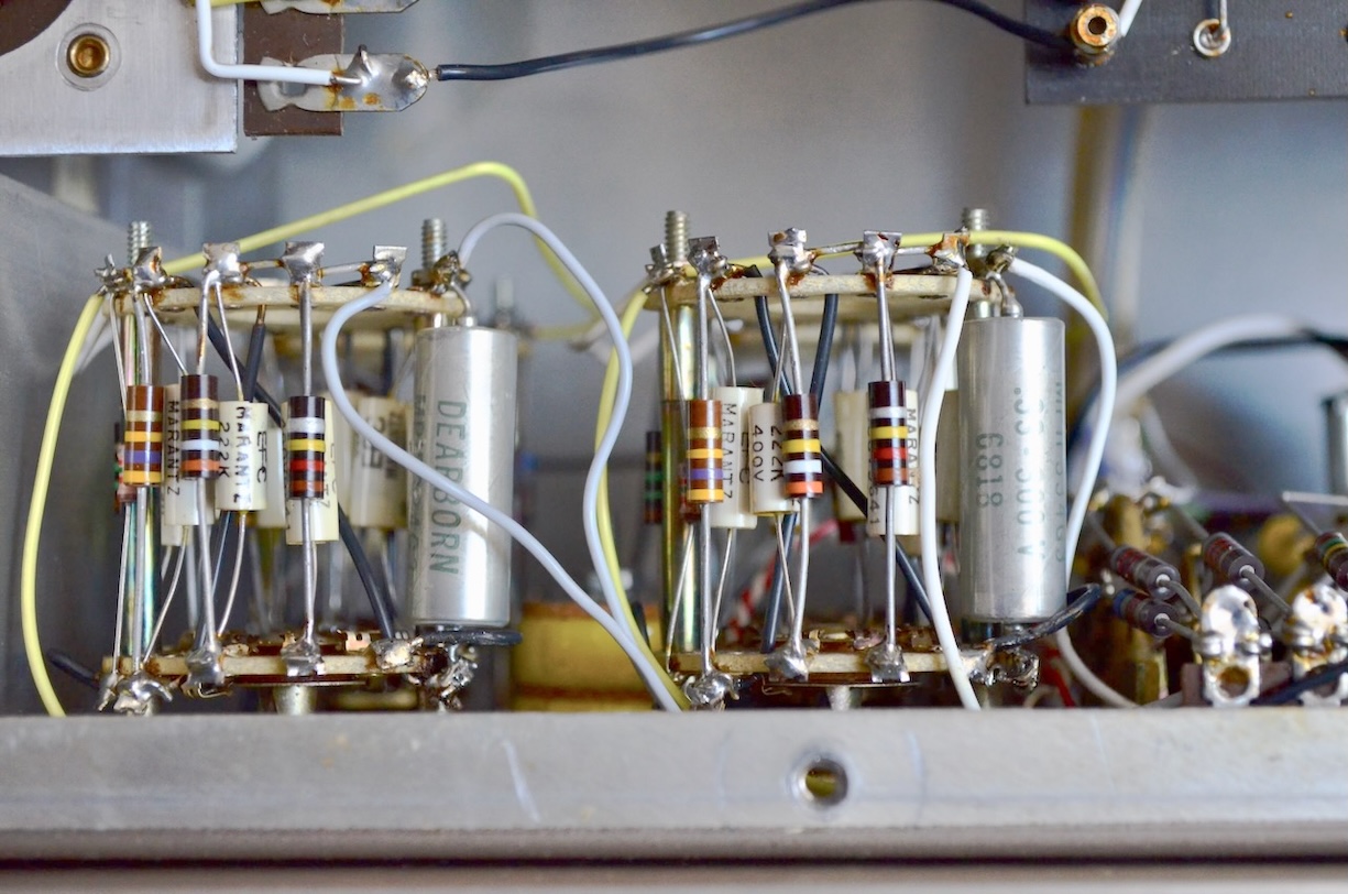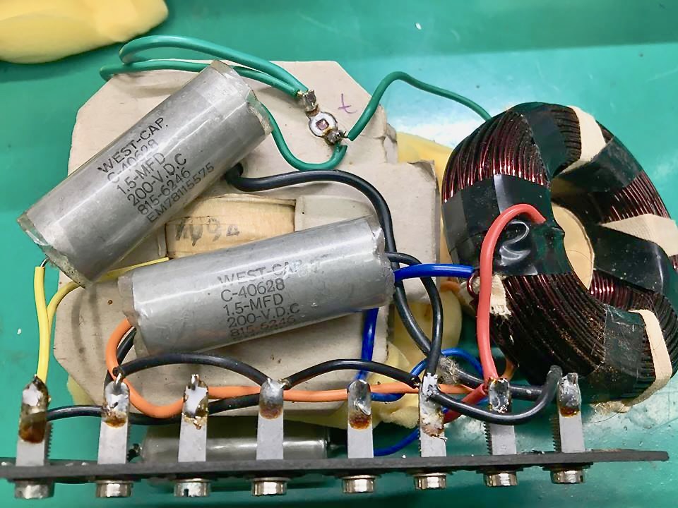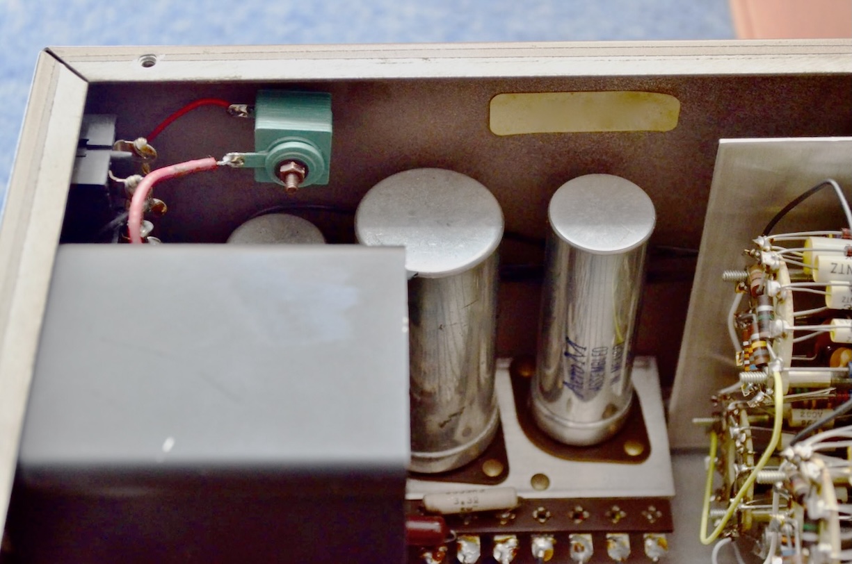このオリジナル・ネットワークのコンデンサーには英ERIEとHUNTS社で製造されたものがあり、今回の個体にはHUNTS社1.5μF/150V Metallisedと8μF/150Vには大型ブロックタイプのMetallized Paper電解コンデンサーが使用されていた。