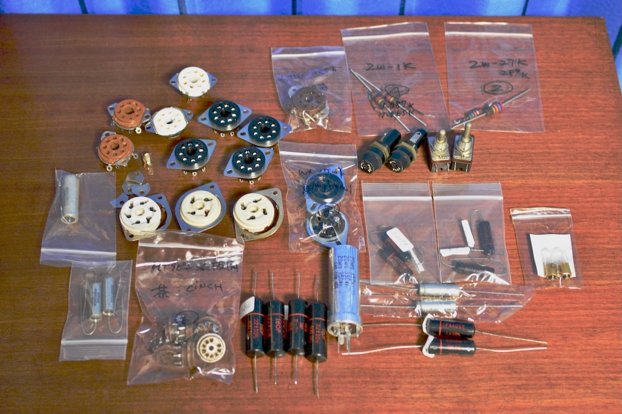 5PINタイト・ソケットやテフロン被覆銀メッキ銅撚り線などの部品が到着し、ベースには頭頂のグリット・トップ部分が割れて使用不能となったTELEFUNKEN RS289の5PINベースを活用することにした。