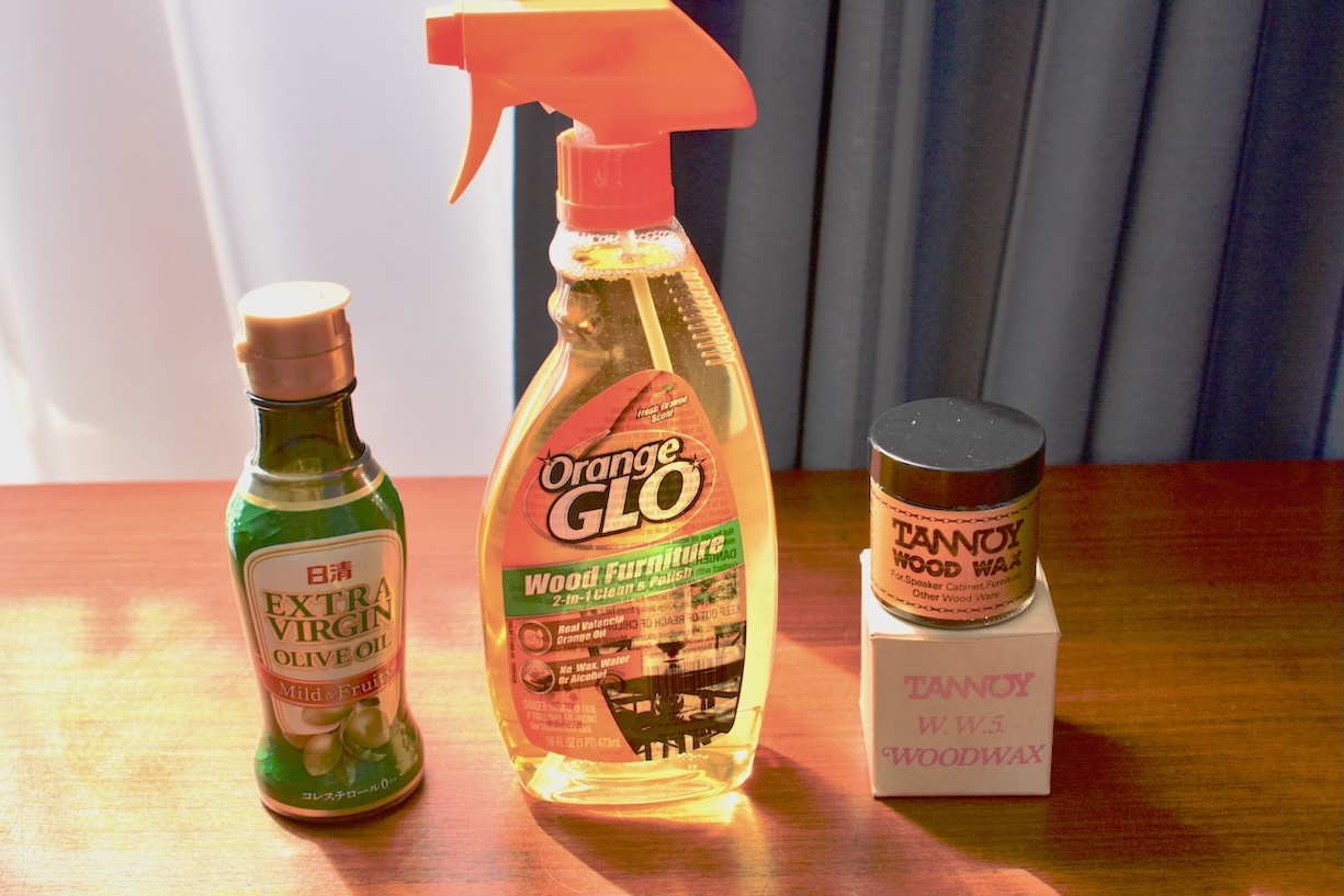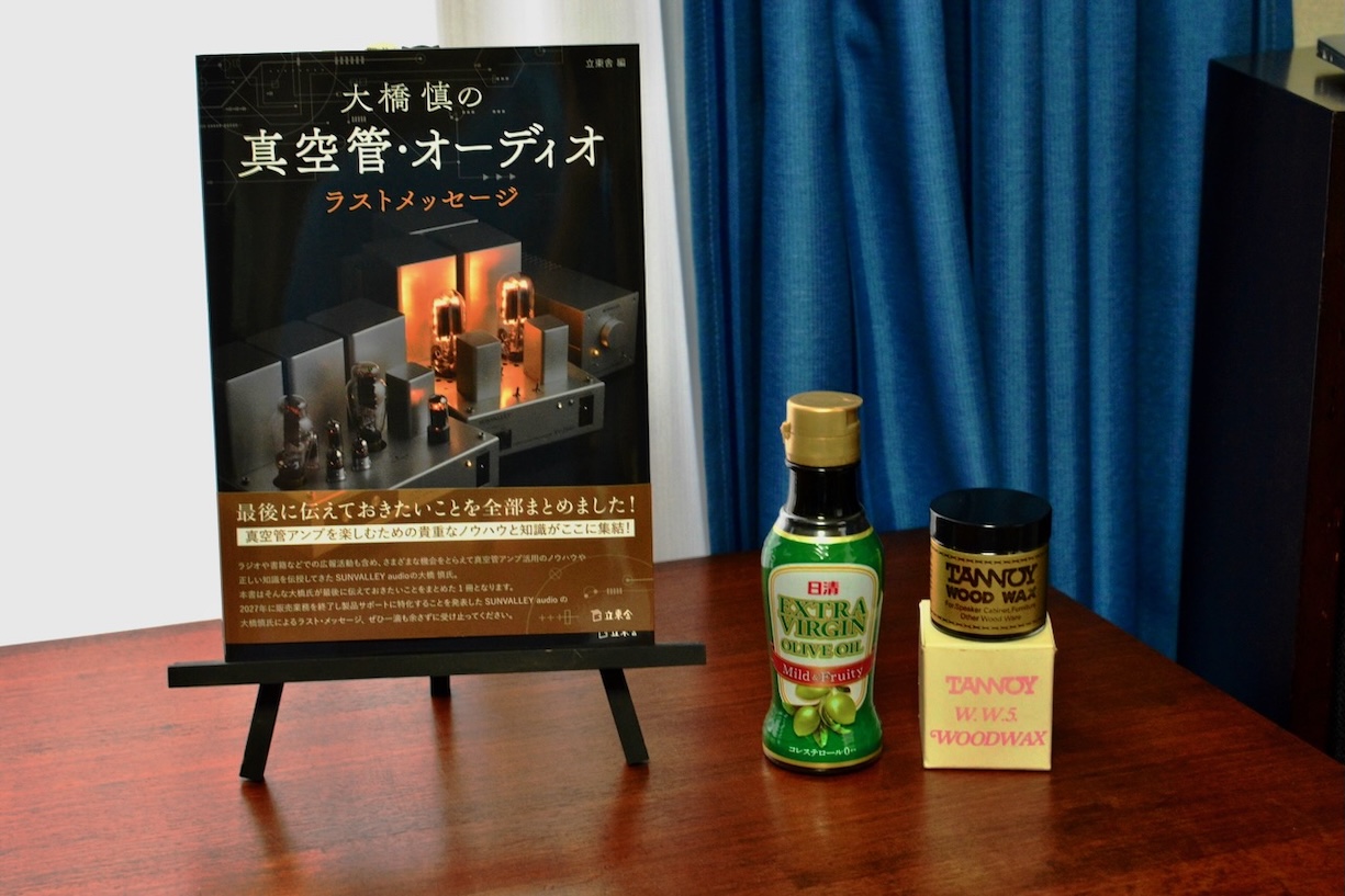 以前TANNOYIIILZを愛用していた頃は、チーク材エンクロージャーのお手入れにはTANNOYのWOODWAXを使用していたが、最近は千葉のオーディオ愛好家のMさんに勧められ、食用のバージンオイルを使用するようになっている。 (9/20)