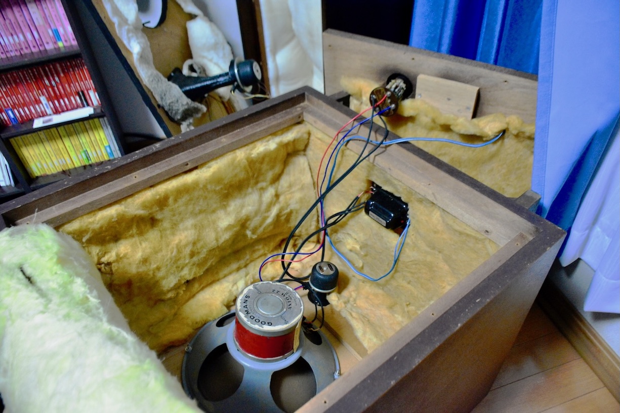 第二次世界大戦後すぐに製造されたGoodmans12"は、後に発売される帯域を拡大したAXIOMのようなサブコーンは用いられておらず、ダイレクトラジエター型で黒帯マグネット自体も13,000gaussと小振りだが、純正ARUを組み込んだエンクロージャーを使って低域に特化することで、十分な広がりを見せてくれている。
