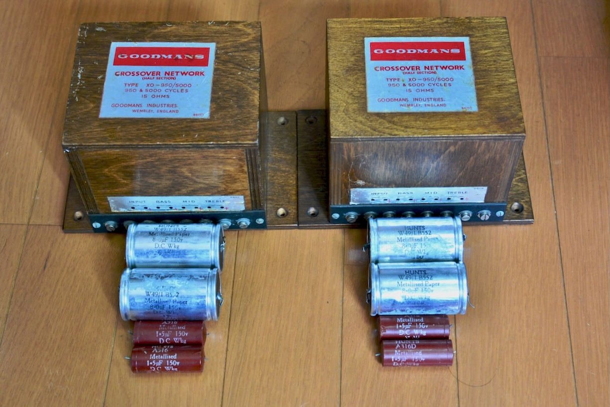 クロスオーバー・ネットワークは純正XO-950/5000を使用しているが、内部コンデンサー(ERIE MP1.5μF/ERIE 無極性電解8μF)は当然劣化しているため、WEST CAPのハーメチック・オイルに交換している。
