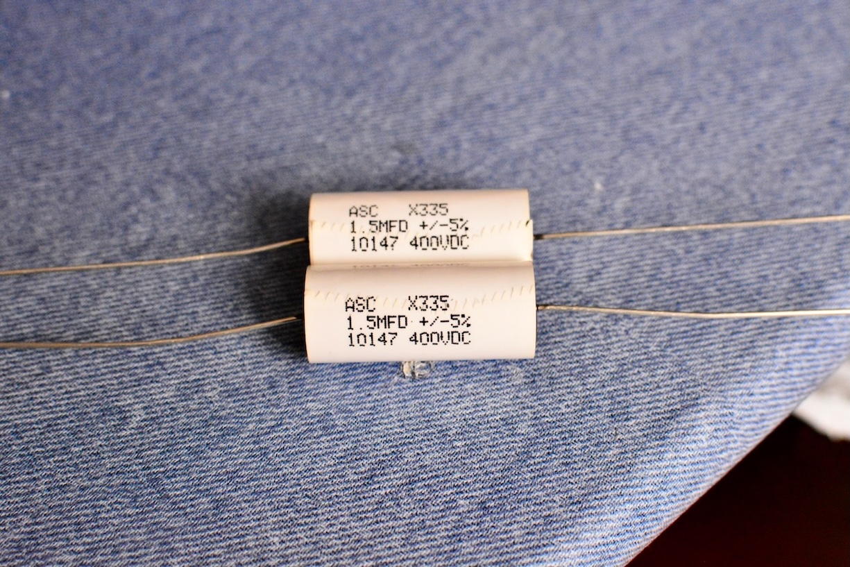 気をよくして高域の音質改善を目指してMKPフィルムコンを評価の高いASC(AMERICAN SHIZUKI CORP)のメタライズド・ポリプロピレン・フィルムに交換しようと考えたが、すでに生産終了しているらしく大半の店舗が在庫限りとなっていて、あちこち探しまわってようやくX335(1.5μF 400V +-5%)を4本調達することができた。