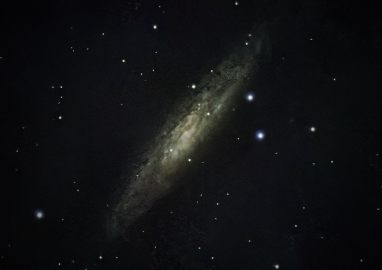 ちょうこくしつ座銀河の方は、高度も低くて撮影条件が整わず、画像修正でこれ以上明るくできなかった。
