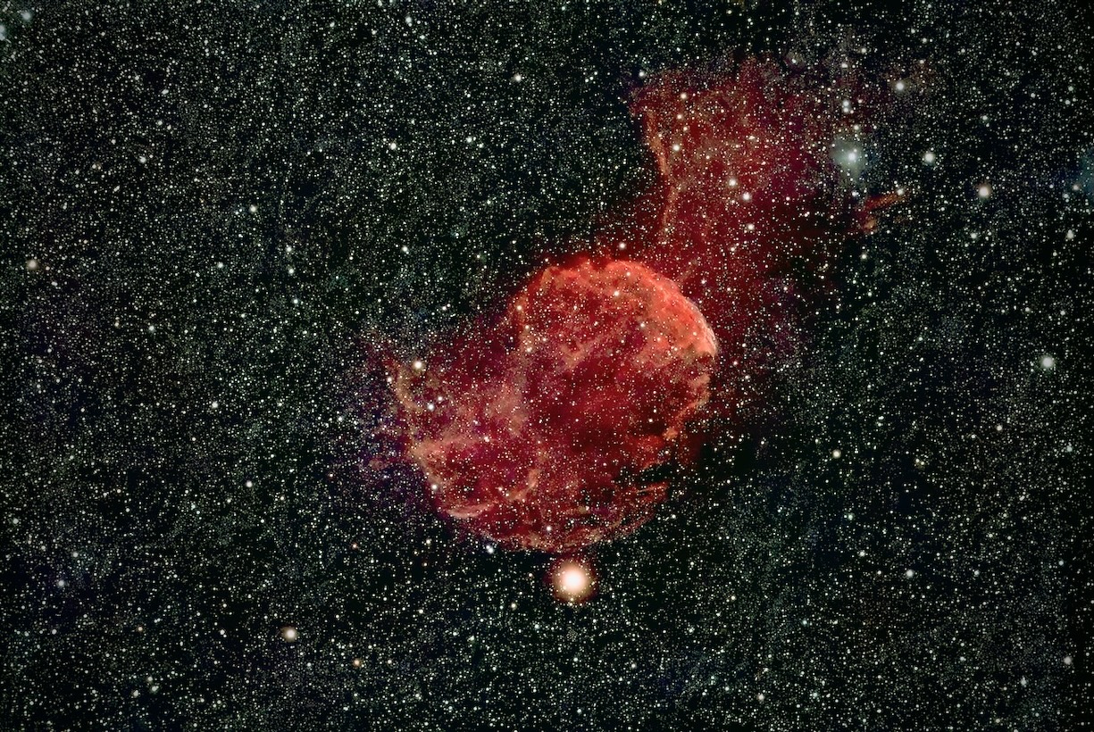 広がった星雲を対象とする場合に正方形センサーだと構図が取りにくいが、SV405CCよりもセンサーが新しく、ノンアンプグローとなっているため鮮明な感じがする。