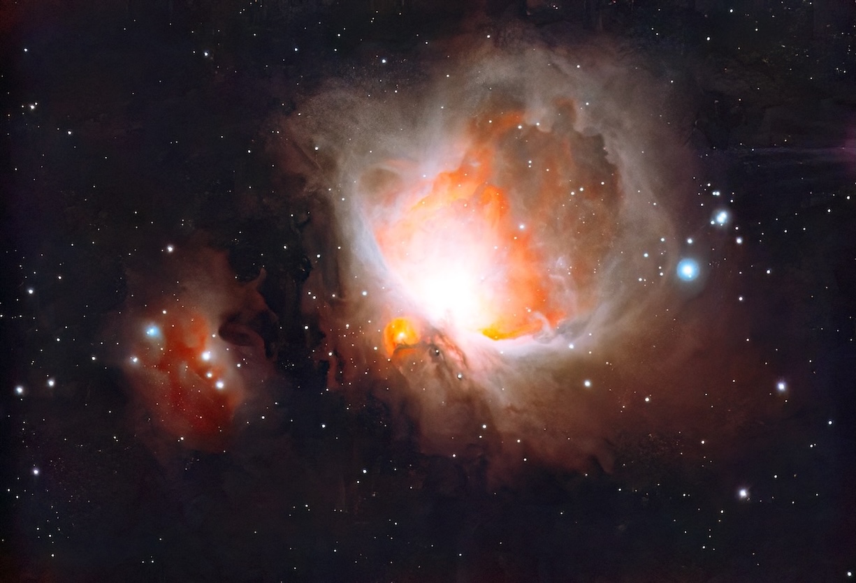 左のKenkoクローズアップレンズNo.4に比べて右のSV193は、流石にフラットナーとしての性能も組み込まれたレデューサー専用設計のため画像がシャープで星々が小さく、星雲の明暗もよく映し出されている。