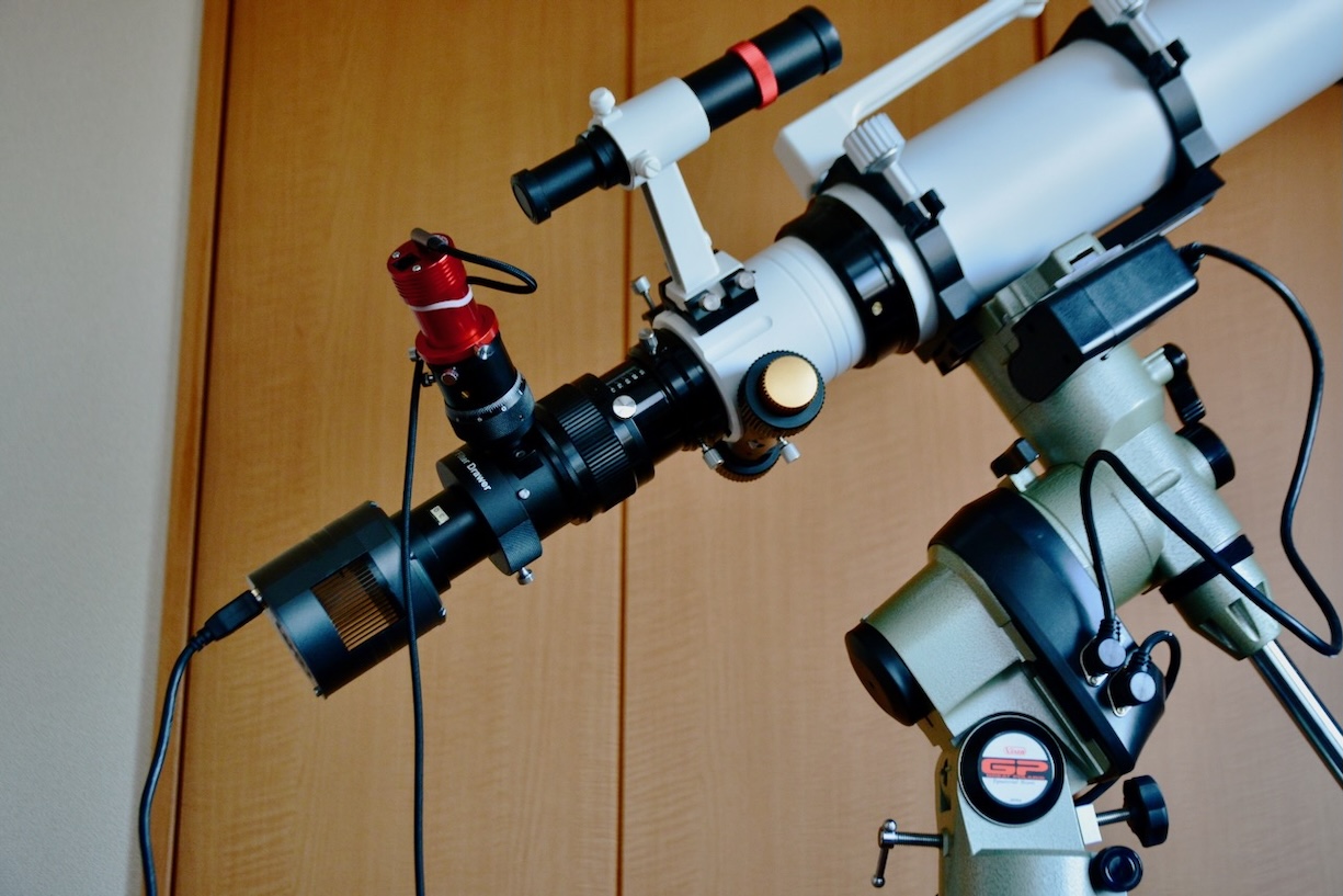 遠方の銀河を被写体にするのに、極小ピクセル高解像度CMOSカメラのASI715MCを使う方法と、タカハシ オルソエクステンダー×2を利用して焦点距離を伸ばす方法のどちらが良いか試している。